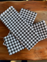 Cotton Cloud Artisan Towels | A kit I purchased from Cotton Clouds, it was supposed to be a houndstooth pattern that did not turn out quite like I had hoped. They still turned out well and the 5 colors looked good together. | 110 cm Louet Spring 2 floor loom | Warp and Weft bot: Cotton Clouds 8/2 Cotton | October 2025 | |